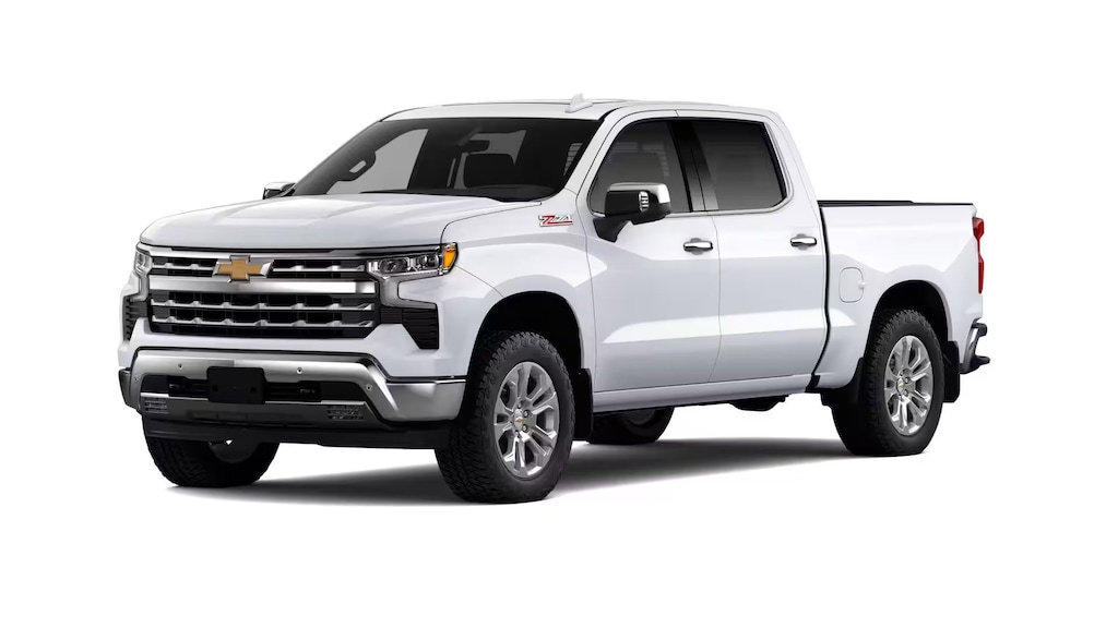 Summit White 2026 4D Crew Cab Chevrolet Silverado 1500 LTZ 4WD 10-Speed Automatic EcoTec3 5.3L V8 10-Speed Automatic, 4WD, Jet Black Leather, 10-Way Power Driver Seat w/Lumbar, 10-Way Power Passenger Seat Adjuster w/Lumbar, 12.3" Multicolor Reconfigurable Digital Display, 15" Diagonal Multicolor Head-Up Display, 170 Amp Alternator, 2 USB Data Ports, 2nd Row Heated Outboard Seats, 3.23 Rear Axle Ratio, 4-Wheel Disc Brakes, 7 Speakers, ABS brakes, Adaptive Cruise Control, Air Conditioning, All-Weather Floor Liner (LPO) (AAK), Alloy wheels, AM/FM radio: SiriusXM with 360L, Apple CarPlay/Android Auto, Auto High-beam Headlights, Auto-dimming door mirrors, Auto-Dimming Inside Rear-View Mirror, Auto-dimming Rear-View mirror, Auto-Locking Rear Differential, Automatic Emergency Braking, Automatic temperature control, Bed View Camera, Bluetooth® For Phone, Brake assist, Bumpers: chrome, Chevytec Spray-On Black Bedliner, Chrome Mirror Caps, Color-Keyed Carpeting Floor Covering, Compass, Deep-Tinted Glass, Delay-off headlights, Driver door bin, Driver Memory, Driver vanity mirror, Dual Exhaust w/Black Exhaust Tips, Dual Exhaust w/Polished Outlets, Dual front impact airbags, Dual front side impact airbags, Dual Rear USB Ports (Charge Only), Electric Rear-Window Defogger, Electronic Cruise Control, Electronic Stability Control, Electronic Transmission Range Selector Shifter, Emergency communication system: OnStar, Floor Mounted Center Console, Following Distance Indicator, Forward Collision Alert, Front anti-roll bar, Front Bucket Seats, Front Center Armrest, Front dual zone A/C, Front fog lights, Front Frame-Mounted Black Recovery Hooks, Front LED Fog Lamps, Front Pedestrian Braking, Front Rain-Sensing Wipers, Front reading lights, Front Rubberized Vinyl Floor Mats, Front wheel independent suspension, Fully automatic headlights, HD Surround Vision, Heated door mirrors, Heated Driver & Front Outboard Passenger Seats, Heated front seats, Heated Steering Wheel, Heated steering wheel, Heavy-Duty Air Filter, High Capacity Suspension Package, Hill Descent Control, Hitch Guidance, Hitch Guidance w/Hitch View, Illuminated entry, In-Vehicle Trailering System App, Integrated Trailer Brake Controller, IntelliBeam Automatic High Beam On/Off, Keyless Open & Start, Lane Keep Assist w/Lane Departure Warning, LED Cargo Area Lighting, Low tire pressure warning, LTZ Convenience Package, LTZ Convenience Package II, LTZ Plus Package, LTZ Premium Package, Memory seat, Molded Black Splash Guards (LPO), Occupant sensing airbag, Off-Road Suspension, OnStar Services Capable, Outside Heated Power-Adjustable Mirrors, Outside temperature display, Overhead airbag, Overhead console, Panic alarm, Passenger door bin, Passenger vanity mirror, Perforated Leather-Appointed Front Seat Trim, Perimeter Lighting, Power door mirrors, Power driver seat, Power Front Passenger Windows w/Express Up/Down, Power Front Windows w/Driver Express Up/Down, Power passenger seat, Power Rear Windows w/Express Down, Power Sliding Rear Window w/Rear Defogger, Power steering, Power Sunroof, Power Tailgate, Power Tilt & Telescoping Steering Column, Power windows, Premium audio system: Chevrolet Infotainment 3 Premium, Premium Bose 7-Speaker Sound System, Radio data system, Radio: Chevrolet Infotainment 3 Premium System, Rain sensing wipers, Rear Camera Mirror, Rear Cross Traffic Braking, Rear Pedestrian Alert, Rear step bumper, Rear Wheelhouse Liners, Rear window defroster, Remote keyless entry, Remote Vehicle Starter System, Safety Alert Seat, Safety Package, Security system, SiriusXM w/360L Trial Subscription, Speed control, Speed-sensing steering, Split folding rear seat, Standard Tailgate, Steering Wheel Audio Controls, Steering wheel mounted audio controls, Tachometer, Technology Package, Teen Driver, Telescoping steering wheel, Theft Deterrent System (Unauthorized Entry), Tilt steering wheel, Tire Pressure Monitoring System, Traction control, Trailer Camera Provisions, Trailer Side Bli