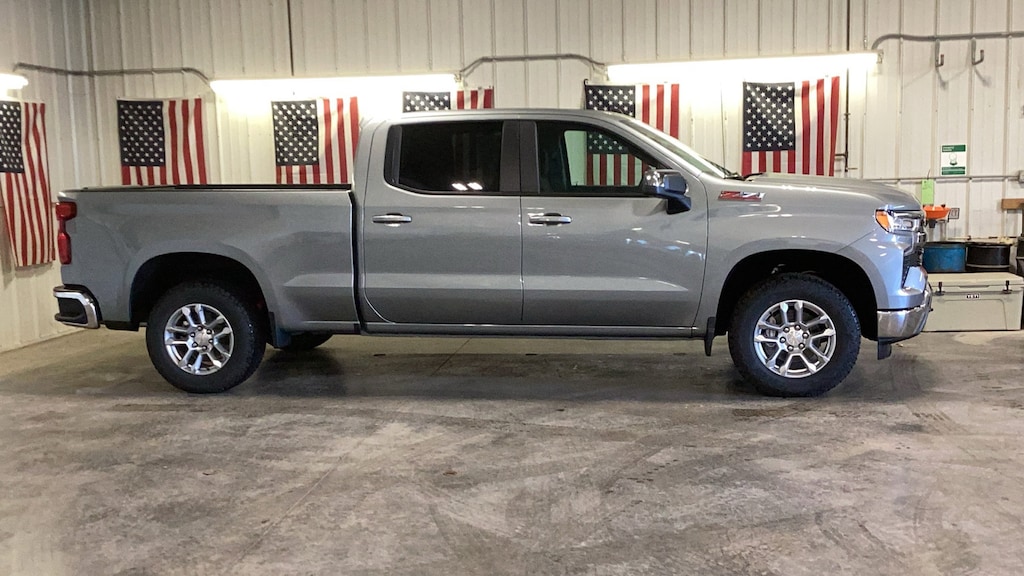 Sterling Gray Metallic 2026 4D Crew Cab Chevrolet Silverado 1500 LT 4WD 10-Speed Automatic EcoTec3 5.3L V8 10-Speed Automatic, 4WD, Jet Black Cloth, 10-Way Power Driver Seat w/Lumbar, 12.3" Multicolor Reconfigurable Digital Display, 120-Volt Bed Mounted Power Outlet, 120-Volt Interior Power Outlet, 170 Amp Alternator, 3.23 Rear Axle Ratio, 4-Wheel Disc Brakes, 40/20/40 Front Split-Bench Seat, 6-Speaker Audio System, ABS brakes, Air Conditioning, All-Star Edition, All-Weather Floor Liner (LPO) (AAK), Alloy wheels, AM/FM radio: SiriusXM with 360L, Apple CarPlay/Android Auto, Auto High-beam Headlights, Auto-Locking Rear Differential, Automatic Emergency Braking, Automatic temperature control, Auxiliary External Transmission Oil Cooler, Bluetooth® For Phone, Brake assist, Bumpers: chrome, Chevytec Spray-On Black Bedliner, Chrome Mirror Caps, Cloth Seat Trim, Color-Keyed Carpeting Floor Covering, Compass, Convenience Package, Deep-Tinted Glass, Delay-off headlights, Driver door bin, Driver vanity mirror, Dual Exhaust w/Polished Outlets, Dual front impact airbags, Dual front side impact airbags, Dual Rear USB Ports (Charge Only), Dual-Zone Automatic Climate Control, Electric Rear-Window Defogger, Electronic Cruise Control, Electronic Stability Control, Emergency communication system: OnStar, External Engine Oil Cooler, EZ Lift Power Lock & Release Tailgate, Following Distance Indicator, Forward Collision Alert, Front anti-roll bar, Front Center Armrest w/Storage, Front dual zone A/C, Front Frame-Mounted Black Recovery Hooks, Front License Plate Kit, Front Pedestrian Braking, Front reading lights, Front Rubberized Vinyl Floor Mats, Front wheel independent suspension, Fully automatic headlights, HD Rear Vision Camera, Heated door mirrors, Heated Driver & Front Outboard Passenger Seats, Heated front seats, Heated Power-Adjustable Outside Mirrors, Heated Steering Wheel, Heated steering wheel, Heavy-Duty Air Filter, Hill Descent Control, Hitch Guidance, Illuminated entry, Inside Rear-View Mirror w/Tilt, Integrated Trailer Brake Controller, IntelliBeam Automatic High Beam On/Off, Keyless Open & Start, Lane Keep Assist w/Lane Departure Warning, LED Cargo Area Lighting, Low tire pressure warning, Manual Tilt/Telescoping Steering Column, Occupant sensing airbag, Off-Road Suspension, OnStar Services Capable, Outside temperature display, Overhead airbag, Overhead console, Panic alarm, Passenger door bin, Passenger vanity mirror, Power door mirrors, Power driver seat, Power Front Windows w/Driver Express Up/Down, Power Front Windows w/Passenger Express Down, Power Rear Windows w/Express Down, Power steering, Power windows, Preferred Equipment Group 1LT, Premium audio system: Chevrolet Infotainment 3 Premium, Protection Package, Radio data system, Radio: Chevrolet Infotainment 3 Premium System, Rear 60/40 Folding Bench Seat (Folds Up), Rear reading lights, Rear Rubberized-Vinyl Floor Mats, Rear step bumper, Rear Wheelhouse Liners, Rear window defroster, Remote keyless entry, Remote Start Package, Remote Vehicle Starter System, Security system, SiriusXM w/360L Trial Subscription, Speed control, Speed-sensing steering, Split folding rear seat, Standard Suspension Package, Standard Tailgate, Steering Wheel Audio Controls, Steering wheel mounted audio controls, Tachometer, Teen Driver, Telescoping steering wheel, Theft Deterrent System (Unauthorized Entry), Tilt steering wheel, Tire Pressure Monitoring System, Traction control, Trailering Package, Trip computer, Variably intermittent wipers, Voltmeter, Wheels: 18" x 8.5" Bright Silver Painted Aluminum, Wi-Fi Hot Spot Capable, Wrapped Steering Wheel, Z71 Off-Road & Protection Package, Z71 Off-Road Package.