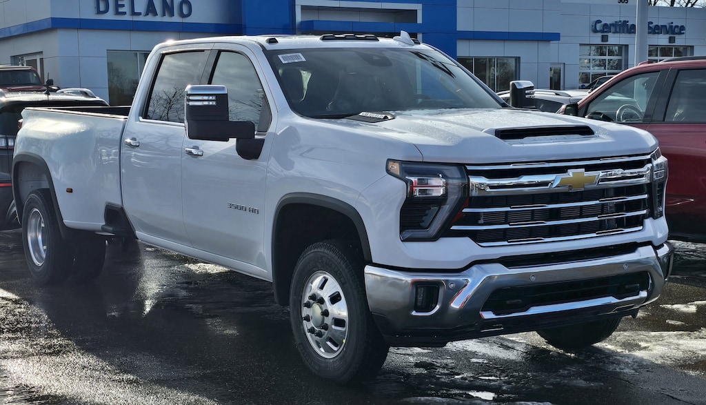 Summit White 2026 4D Crew Cab Chevrolet Silverado 3500HD LTZ 4WD 10-Speed Automatic Duramax 6.6L V8 Turbodiesel 10-Speed Automatic, 4WD, Jet Black Leather, 10-Way Power Driver Seat Adjuster with Lumbar, 10-Way Power Passenger Seat Adjuster with Lumbar, 120-Volt Bed Mounted Power Outlet, 120-Volt Interior Power Outlet, 2 Charge/Data USB Ports Inside Center Console, 220 Amp Alternator, 4-Wheel Disc Brakes, 6 Speakers, 6-Speaker Audio System Feature, ABS brakes, Adaptive Cruise Control, Air Conditioning, AM/FM radio: SiriusXM with 360L, Apple CarPlay/Android Auto, Auto High-beam Headlights, Auto-dimming door mirrors, Auto-Dimming Inside Rear-View Mirror, Auto-Dimming Inside Rearview Mirror with Camera, Auto-dimming Rear-View mirror, Automatic temperature control, Bed View Camera with Two Trailer Camera Provisions, Black Name Plates, Bluetooth® For Phone, Bose Premium 7-Speaker Sound System, Brake assist, Bumpers: chrome, Chevrolet Connected Access Capable, Chevytec Spray-on Black Bedliner, Chrome Door Handles, Chrome Mirror Caps, Color-Keyed Carpeting Floor Covering, Compass, Compass Located in Instrument Cluster, Dark Essentials Package, Deep-Tinted Glass, Delay-off headlights, Driver door bin, Driver Memory, Driver vanity mirror, Dual front impact airbags, Dual front side impact airbags, Durabed Pickup Bed, Electric Rear-Window Defogger, Electronic Stability Control, Emergency communication system, EZ Lift Power Lock and Release Tailgate, Floor-Mounted Center Console, Front 40/20/40 Split-Bench Seats with Lockable Storage, Front anti-roll bar, Front Black Bowtie Emblem, Front Bucket Seats, Front Center Armrest w/Storage, Front dual zone A/C, Front fog lights, Front LED Fog Lamps, Front Rain-Sensing Wipers, Front reading lights, Front Rubberized Vinyl Floor Mats, Front wheel independent suspension, Fully automatic headlights, Gooseneck/5th Wheel Prep Package, HD Rear Vision Camera, HD Surround Vision, Heated 2nd Row Outboard Seats, Heated door mirrors, Heated Driver and Front Outboard Passenger Seats, Heated front seats, Heated Steering Wheel, Heated steering wheel, Heavy-Duty 80 Amp-Hour Battery, Hitch Guidance with Hitch View, Illuminated entry, in-Vehicle Trailering App System, Keyless Open and Start, LED Cargo Area Lighting, Low tire pressure warning, LTZ Convenience Package, LTZ Convenience Package II, LTZ Plus Package, Manual Tilt-Wheel/Telescoping Steering Column, Memory seat, Multicolor 15" Diagonal Head-Up Display, Occupant sensing airbag, OnStar Services Capable, Outside temperature display, Overhead airbag, Overhead console, Panic alarm, Passenger door bin, Passenger vanity mirror, Perforated Leather-Appointed Front Outboard Seat Trim, Power Door Locks, Power door mirrors, Power driver seat, Power Front Windows with Driver Express Up/Down, Power Front Windows with Passenger Express Up/Down, Power passenger seat, Power Rear Windows with Express Down, Power Sliding Rear Window with Defogger, Power steering, Power Sunroof, Power windows, Premium audio system: Chevrolet Infotainment 3 Premium, Push Button Start, Radio: Chevrolet Infotainment 3 Premium System, Rain sensing wipers, Rear Cross Traffic Alert, Rear reading lights, Rear Rubberized-Vinyl Floor Mats, Rear seat center armrest, Rear step bumper, Rear Wheelhouse Liners, Rear window defroster, Remote keyless entry, Remote Vehicle Starter System, Safety Alert Seat, Safety Package, Security system, SiriusXM with 360L Trial Subscription, Snow Plow Prep/Camper Package, Speed control, Speed-sensing steering, Split folding rear seat, Standard Tailgate, Steering Wheel Audio Controls, Steering wheel mounted audio controls, Steering Wheel Mounted Electronic Cruise Control, Suspension Package, Tachometer, Technology Package, Telescoping steering wheel, Tilt steering wheel, Traction control, Trailer Camera Provisions, Trailer Side Blind Zone Alert, Trip computer, Turn signal indicator mirrors, Ultrasonic Front and Rear Park Assist, Unauthorized Entry Theft-Deterrent System