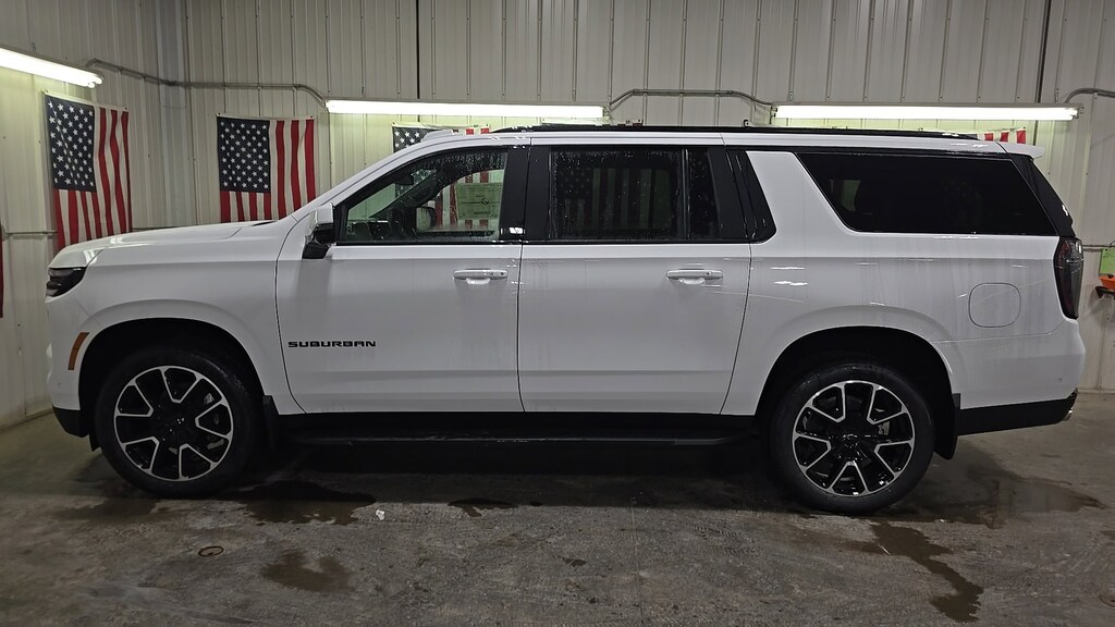 Summit White 2026 4D Sport Utility Chevrolet Suburban RST 4WD 10-Speed Automatic with Overdrive EcoTec3 5.3L V8 1st and 2nd Rows All-Weather Floor Liners, 2-Speed Active Electronic AutoTrac Transfer Case, 2-Way Driver Power Lumbar Seat Adjuster, 2-Way Front Passenger Power Lumbar Seat Adjuster, 2nd Row Power Release 60/40 Split-Folding Bench Seat, 3.23 Rear Axle Ratio, 3rd Row 60/40 Power-Folding Split-Bench, 3rd Row All-Weather Floor Liners, 3rd row seats: split-bench, 4-Wheel Disc Brakes, 6-Speaker Audio System, 8-Way Power Driver Seat Adjuster, 8-Way Power Front Passenger Seat Adjuster, ABS brakes, Advanced Trailering Package, Air Conditioning, All-Weather Cargo Mat, All-Weather Liner Protection Package, Alloy wheels, AM/FM radio: SiriusXM with 360L, Apple CarPlay/Android Auto, Auto High-beam Headlights, Auto-Dimming Inside Rear-View Mirror, Auto-dimming Rear-View mirror, Automatic temperature control, Blind Zone Steering Assist with Trailering, Bose 10-Speaker Surround with CenterPoint, Brake assist, Bright Front and Rear Door Sill Plates, Bumpers: body-color, Comfort Package, Compass, Delay-off headlights, Driver door bin, Driver vanity mirror, Dual Exhaust System, Dual front impact airbags, Dual front side impact airbags, Dual-Pane Power Panoramic Sunroof, Electronic Stability Control, Emergency communication system: OnStar Services capable, Exterior Parking Camera Rear, Four wheel independent suspension, Front anti-roll bar, Front Bucket Seats, Front Center Armrest, Front dual zone A/C, Front fog lights, Front LED Fog Lamps, Front reading lights, Fully automatic headlights, Garage door transmitter, Heated 2nd Row Outboard Seats, Heated door mirrors, Heated Driver and Front Passenger Seats, Heated front seats, Heated Power-Adjustable Outside Mirrors, Heated Steering Wheel, Hill Descent Control, Hitch View with Pan/Zoom Image Adjustment, Illuminated entry, Integrated Trailer Brake Controller, Interior Camera, LED Headlamps with LED Daytime Running Lamps, LED Tail Lamps, Low tire pressure warning, Max Trailering Package, Memory seat, Memory Settings, Memory Settings For Driver, Molded Splash Guards, Navigation system: Google built-in compatibility (select service plan required, terms and limitations apply), Occupant sensing airbag, Outside temperature display, Overhead airbag, Overhead console, Panic alarm, Passenger door bin, Passenger vanity mirror, Perforated Leather Seating Surfaces, Power door mirrors, Power driver seat, Power Liftgate, Power passenger seat, Power Release 2nd Row Bucket Seats, Power steering, Power windows, Premium Smooth Ride Suspension, Radio data system, Radio: 17.7" Diagonal Advanced Color LCD Display, Rear air conditioning, Rear anti-roll bar, Rear Power Liftgate, Rear reading lights, Rear seat center armrest, Rear window defroster, Rear window wiper, Remote keyless entry, RST Exterior Features, Security system, SiriusXM with 360L Trial Subscription, Smart Trailer Integration Indicator, Speed control, Speed-sensing steering, Split folding rear seat, Spoiler, Steering wheel mounted audio controls, Tachometer, Telescoping steering wheel, Tilt steering wheel, Traction control, Trip computer, Universal Home Remote, Variably intermittent wipers, Voltmeter, Wheel Locks (set of 4), Wheels: 22" x 9" Bright Machined, Wireless Apple CarPlay/Wireless Android Auto, Wireless Phone Charging.