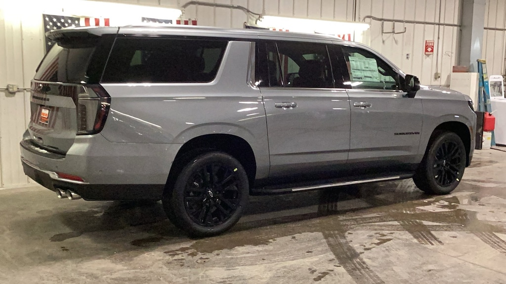 Sterling Gray Metallic 2026 4D Sport Utility Chevrolet Suburban Premier 4WD 10-Speed Automatic with Overdrive EcoTec3 5.3L V8 10 Speakers, 2-Speed Active Electronic AutoTrac Transfer Case, 22" Multi-Spoke Gloss Black Wheels, 3.23 Rear Axle Ratio, 3rd Row 60/40 Power-Folding Split-Bench, 3rd row seats: split-bench, 4-Way Power Driver Lumbar Seat Adjuster, 4-Way Power Front Passenger Lumbar Seat Adjuster, 4-Wheel Disc Brakes, 8-Way Power Driver Seat Adjuster, 8-Way Power Front Passenger Seat Adjuster, ABS brakes, Adaptive suspension, Advanced Trailering Package, Air Conditioning, AM/FM radio: SiriusXM with 360L, Apple CarPlay/Android Auto, Auto High-beam Headlights, Auto-dimming door mirrors, Auto-Dimming Inside Rear-View Mirror, Auto-dimming Rear-View mirror, Auto-leveling suspension, Automatic temperature control, Black Grille with Black Bowtie Emblem, Black Mirror Caps, Black Name Plates, Blind Zone Steering Assist with Trailering, Bose 10-Speaker Surround with CenterPoint, Brake assist, Bright Front and Rear Door Sill Plates, Bumpers: body-color, Chrome Door Handles with Body-Color Strip, Chrome Mirror Caps, Compass, Delay-off headlights, Driver door bin, Driver vanity mirror, Dual Exhaust System, Dual front impact airbags, Dual front side impact airbags, Dual-Pane Power Panoramic Sunroof, Electronic Stability Control, Emergency communication system: OnStar Services capable, Exterior Parking Camera Rear, Four wheel independent suspension, Front anti-roll bar, Front Bucket Seats, Front Center Armrest, Front dual zone A/C, Front fog lights, Front LED Fog Lamps, Front reading lights, Fully automatic headlights, Garage door transmitter, Heated 2nd Row Outboard Seats, Heated door mirrors, Heated Driver and Front Passenger Seats, Heated front seats, Heated Power-Adjustable Outside Mirrors, Heated rear seats, Heated Steering Wheel, Heated steering wheel, Hill Descent Control, Hitch View with Pan/Zoom Image Adjustment, Illuminated entry, Integrated Trailer Brake Controller, Interior Camera, LED Headlamps with LED Daytime Running Lamps, LED Tail Lamps, Low tire pressure warning, Magnetic Ride Control Suspension, Max Trailering Package, Memory seat, Memory Settings, Navigation system: Google built-in compatibility (select service plan required, terms and limitations apply), Occupant sensing airbag, Outside temperature display, Overhead airbag, Overhead console, Panic alarm, Passenger door bin, Passenger vanity mirror, Perforated Heated and Ventilated Seats, Perforated Leather Seating Surfaces, Power door mirrors, Power driver seat, Power Liftgate, Power passenger seat, Power Release 2nd Row Bucket Seats, Power steering, Power Tilt and Telescopic Steering Column, Power windows, Power-Sliding Center Floor Console, Premium Dark Essentials Package, Radio data system, Radio: 17.7" Diagonal Advanced Color LCD Display, Rain sensing wipers, Rear air conditioning, Rear anti-roll bar, Rear Power Liftgate, Rear reading lights, Rear window defroster, Rear window wiper, Remote keyless entry, Security system, SiriusXM with 360L Trial Subscription, Smart Trailer Integration Indicator, Speed control, Speed-sensing steering, Split folding rear seat, Spoiler, Steering wheel memory, Steering wheel mounted audio controls, Sun and Tow Package, Tachometer, Telescoping steering wheel, Tilt steering wheel, Traction control, Trip computer, Turn signal indicator mirrors, Universal Home Remote, Variably intermittent wipers, Ventilated front seats, Voltmeter, Wheels: 22" Steel, Wireless Apple CarPlay/Wireless Android Auto, Wireless Phone Charging.
