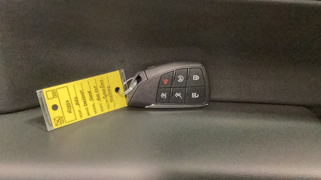 Cypress Gray 2026 4D Sport Utility Chevrolet Tahoe RST 4WD 10-Speed Automatic with Overdrive EcoTec3 5.3L V8 4WD, Jet Black/Victory Red Leather, 1st and 2nd Row Color-Keyed Carpeted Floor Mats, 2-Speed Active Electronic AutoTrac Transfer Case, 2-Way Power Driver Lumbar Seat Adjuster, 2-Way Power Front Passenger Lumbar Seat Adjuster, 22" Multi-Spoke Gloss Black Wheels, 2nd Row Power Release 60/40 Split-Folding Bench Seat, 3-Spoke Wrapped Steering Wheel, 3.23 Rear Axle Ratio, 3rd Row 60/40 Power-Folding Split-Bench Seat, 3rd Row All-Weather Floor Liners, 3rd Row Manual 60/40 Split-Folding Bench Seats, 3rd row seats: split-bench, 4-Wheel Disc Brakes, 6-Speaker Audio System Feature, 8-Way Power Driver Seat Adjuster, 8-Way Power Front Passenger Seat Adjuster, ABS brakes, Advanced Trailering Package, Air Conditioning, Air Ride Adaptive Suspension, All-Weather Cargo Mat, Alloy wheels, AM/FM radio: SiriusXM with 360L, Apple CarPlay/Android Auto, Auto High-beam Headlights, Auto-Dimming Inside Rear-View Mirror, Auto-dimming Rear-View mirror, Automatic temperature control, Blind Zone Steering Assist with Trailering, Bose 10-Speaker Centerpoint Surround Audio System Feature, Brake assist, Bright Front and Rear Door Sill Plates, Bumpers: body-color, Color-Keyed Carpeting Floor Covering, Comfort Package, Compass, Delay-off headlights, Driver door bin, Driver vanity mirror, Dual Exhaust System, Dual front impact airbags, Dual front side impact airbags, Dual-Pane Power Panoramic Sunroof, Electronic Stability Control, Emergency communication system: OnStar and Chevrolet connected services capable, Exterior Parking Camera Rear, First and Second Rows Premium Floor Liners, Floor Console, Floor Console with Storage Area, Four wheel independent suspension, Front anti-roll bar, Front Bucket Seats, Front Center Armrest, Front dual zone A/C, Front fog lights, Front LED Fog Lamps, Front reading lights, Frontal Driver and Outboard Passenger Airbags, Fully automatic headlights, Garage door transmitter, Heated 2nd Row Outboard Seats, Heated door mirrors, Heated Driver and Front Passenger Seats, Heated front seats, Heated Steering Wheel, Hill Descent Control, Hitch View with Pan/Zoom Image Adjustment, Illuminated entry, Integrated Trailer Brake Controller, Interior Camera, Key Card, LED Headlamps with LED Daytime Running Lamps, LED Tail Lamps, Low tire pressure warning, Magnetic Ride Control Suspension, Max Trailering Package, Memory seat, Memory Settings, Memory Settings For Driver, Navigation system: Google built-in compatibility (select service plan required, terms and limitations apply), Occupant sensing airbag, Outside Heated Power-Adjustable Mirrors, Outside temperature display, Overhead airbag, Overhead console, Panic alarm, Passenger door bin, Passenger vanity mirror, Perforated Leather Seat Trim, Power door mirrors, Power driver seat, Power Liftgate, Power passenger seat, Power Release 2nd Row Bucket Seats, Power steering, Power windows, Premium audio system: Chevrolet Infotainment 3 Premium, Premium Liner Protection Package, Premium Smooth Ride Suspension, Radio data system, Radio: 17.7" Diagonal Advanced Color LCD Display, Rain sensing wipers, Rear air conditioning, Rear anti-roll bar, Rear Power Liftgate, Rear reading lights, Rear seat center armrest, Rear window defroster, Rear window wiper, Remote keyless entry, Remote Start, RST Capability Package, RST Exterior Features, Security system, SiriusXM with 360L Trial Subscription, Smart Trailer Integration Indicator, Speed control, Speed-sensing steering, Split folding rear seat, Spoiler, Steering wheel mounted audio controls, Tachometer, Telescoping steering wheel, Tilt steering wheel, Traction control, Trip computer, Universal Home Remote, USB Ports, Variably intermittent wipers, Voltmeter, Wireless Phone Charging.