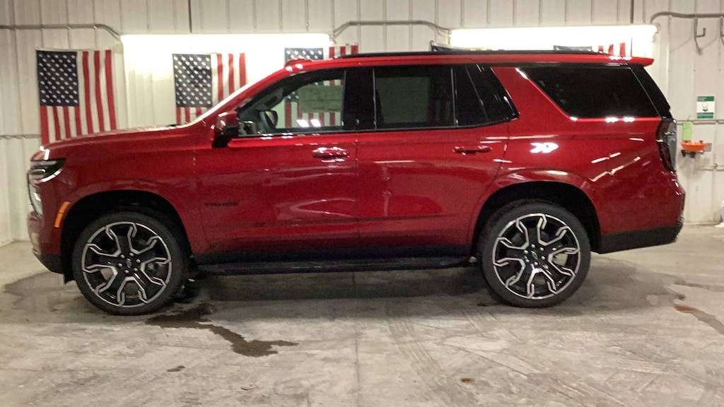 Radiant Red Tintcoat 2026 4D Sport Utility Chevrolet Tahoe RST 4WD 10-Speed Automatic with Overdrive EcoTec3 5.3L V8 4WD, Jet Black/Victory Red Leather, 1st and 2nd Row Color-Keyed Carpeted Floor Mats, 1st and 2nd Rows All-Weather Floor Liners, 2-Speed Active Electronic AutoTrac Transfer Case, 2-Way Power Driver Lumbar Seat Adjuster, 2-Way Power Front Passenger Lumbar Seat Adjuster, 2nd Row Power Release 60/40 Split-Folding Bench Seat, 3-Spoke Wrapped Steering Wheel, 3.23 Rear Axle Ratio, 3rd Row 60/40 Power-Folding Split-Bench Seat, 3rd Row All-Weather Floor Liners, 3rd Row Manual 60/40 Split-Folding Bench Seats, 3rd row seats: split-bench, 4-Wheel Disc Brakes, 6-Speaker Audio System Feature, 8-Way Power Driver Seat Adjuster, 8-Way Power Front Passenger Seat Adjuster, ABS brakes, Advanced Trailering Package, Air Conditioning, Air Ride Adaptive Suspension, All-Weather Cargo Mat, All-Weather Liner Protection Package, Alloy wheels, AM/FM radio: SiriusXM with 360L, Apple CarPlay/Android Auto, Auto High-beam Headlights, Auto-Dimming Inside Rear-View Mirror, Auto-dimming Rear-View mirror, Automatic temperature control, Blind Zone Steering Assist with Trailering, Bose 10-Speaker Centerpoint Surround Audio System Feature, Brake assist, Bright Front and Rear Door Sill Plates, Bumpers: body-color, Color-Keyed Carpeting Floor Covering, Comfort Package, Compass, Delay-off headlights, Driver door bin, Driver vanity mirror, Dual Exhaust System, Dual front impact airbags, Dual front side impact airbags, Dual-Pane Power Panoramic Sunroof, Electronic Stability Control, Emergency communication system: OnStar and Chevrolet connected services capable, Exterior Parking Camera Rear, Floor Console, Floor Console with Storage Area, Four wheel independent suspension, Front anti-roll bar, Front Bucket Seats, Front Center Armrest, Front dual zone A/C, Front fog lights, Front LED Fog Lamps, Front reading lights, Frontal Driver and Outboard Passenger Airbags, Fully automatic headlights, Garage door transmitter, Heated 2nd Row Outboard Seats, Heated door mirrors, Heated Driver and Front Passenger Seats, Heated front seats, Heated Steering Wheel, Hill Descent Control, Hitch View with Pan/Zoom Image Adjustment, Illuminated entry, Integrated Trailer Brake Controller, Interior Camera, Key Card, LED Headlamps with LED Daytime Running Lamps, LED Tail Lamps, Low tire pressure warning, Magnetic Ride Control Suspension, Max Trailering Package, Memory seat, Memory Settings, Memory Settings For Driver, Navigation system: Google built-in compatibility (select service plan required, terms and limitations apply), Occupant sensing airbag, Outside Heated Power-Adjustable Mirrors, Outside temperature display, Overhead airbag, Overhead console, Panic alarm, Passenger door bin, Passenger vanity mirror, Perforated Leather Seat Trim, Power door mirrors, Power driver seat, Power Liftgate, Power passenger seat, Power Release 2nd Row Bucket Seats, Power steering, Power windows, Premium audio system: Chevrolet Infotainment 3 Premium, Premium Smooth Ride Suspension, Radio data system, Radio: 17.7" Diagonal Advanced Color LCD Display, Rain sensing wipers, Rear air conditioning, Rear anti-roll bar, Rear Power Liftgate, Rear reading lights, Rear seat center armrest, Rear window defroster, Rear window wiper, Remote keyless entry, Remote Start, RST Capability Package, RST Exterior Features, Security system, Set of 4 Wheel Locks, SiriusXM with 360L Trial Subscription, Smart Trailer Integration Indicator, Speed control, Speed-sensing steering, Split folding rear seat, Spoiler, Steering wheel mounted audio controls, Tachometer, Telescoping steering wheel, Tilt steering wheel, Traction control, Trip computer, Universal Home Remote, USB Ports, Variably intermittent wipers, Voltmeter, Wheels: 24" x 9.5" Machined, Wireless Phone Charging.