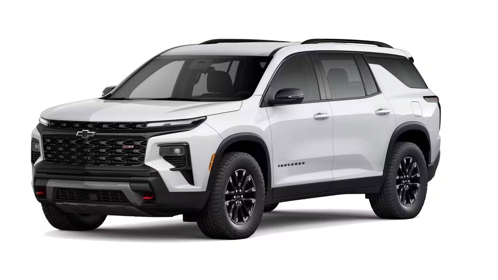Polar White Tricoat 2026 4D Sport Utility Chevrolet Traverse Z71 AWD 8-Speed Automatic 2.5L DOHC AWD, 3rd row seats: split-bench, 4-Way Manual Front Passenger Seat Adjuster, 4-Wheel Disc Brakes, 6-Speaker Audio System Feature, 8-Way Power Driver Seat Adjuster, ABS brakes, Air Conditioning, Alloy wheels, AM/FM radio: SiriusXM with 360L, Apple CarPlay/Android Auto, Auto High-beam Headlights, Automatic temperature control, Brake assist, Child-Seat-Sensing Airbag, Compass, Delay-off headlights, Driver Confidence Package, Driver door bin, Driver vanity mirror, Dual front impact airbags, Dual front side impact airbags, Electronic Stability Control, Emergency communication system: OnStar, Evotex Seat Trim, Four wheel independent suspension, Front anti-roll bar, Front Bucket Seats, Front Center Armrest, Front dual zone A/C, Front reading lights, Fully automatic headlights, HD Surround Vision, Heated door mirrors, Heated Driver and Front Passenger Seats, Heated front seats, Heated steering wheel, Illuminated entry, Key Card, Low tire pressure warning, Navigation System, Occupant sensing airbag, Outside temperature display, Overhead airbag, Overhead console, Panic alarm, Passenger door bin, Passenger vanity mirror, Power door mirrors, Power driver seat, Power Dual Glass Panoramic Sliding Sunroof, Power Liftgate, Power Outlet, Power steering, Power windows, Radio data system, Radio: : Audio System w/17.7" Diagonal Display, Rear air conditioning, Rear anti-roll bar, Rear Camera Mirror, Rear Pedestrian Alert, Rear reading lights, Rear window defroster, Rear window wiper, Remote keyless entry, Security system, SiriusXM with 360L Trial Subscription, Speed control, Speed-sensing steering, Spoiler, Steering wheel mounted audio controls, Tachometer, Telescoping steering wheel, Tilt steering wheel, Traction control, Traffic Sign Recognition, Trip computer, Turn signal indicator mirrors, Variably intermittent wipers, Voltmeter, Wheels: : 18" High Gloss Black Painted Aluminum.